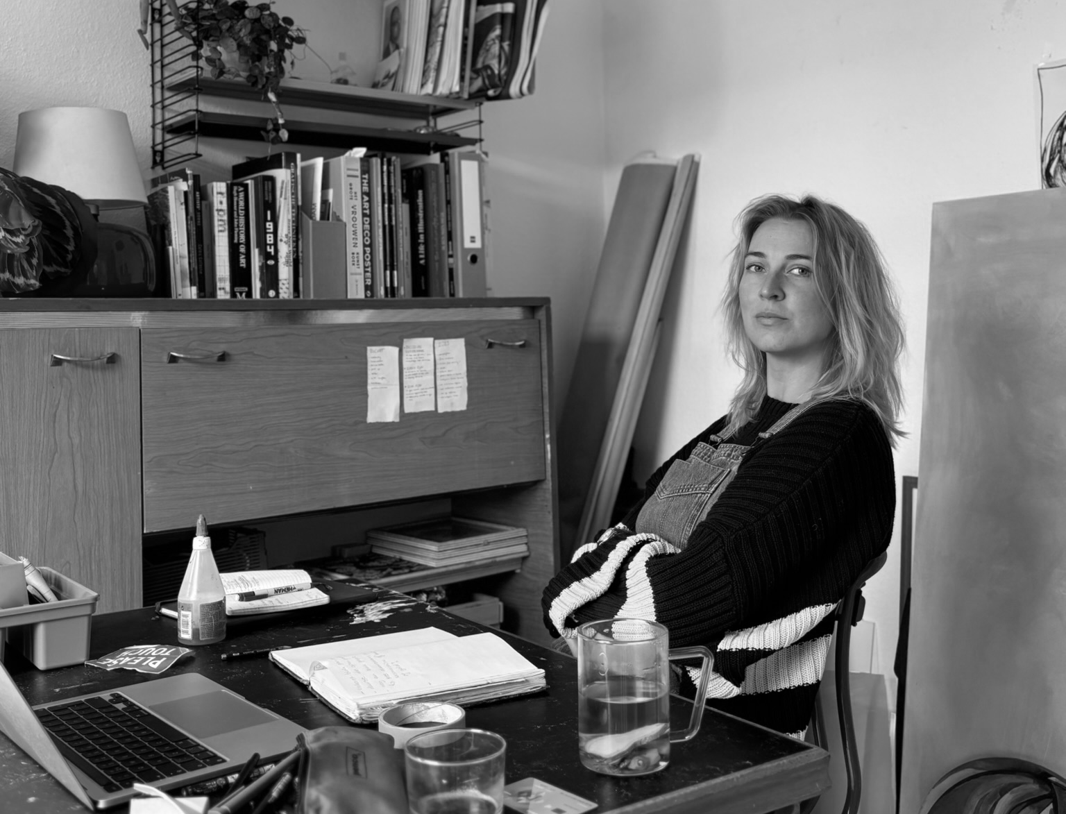 She graduated from Minerva Art Academy and moves effortlessly between painting, screen printing, woodcut, and spatial work.